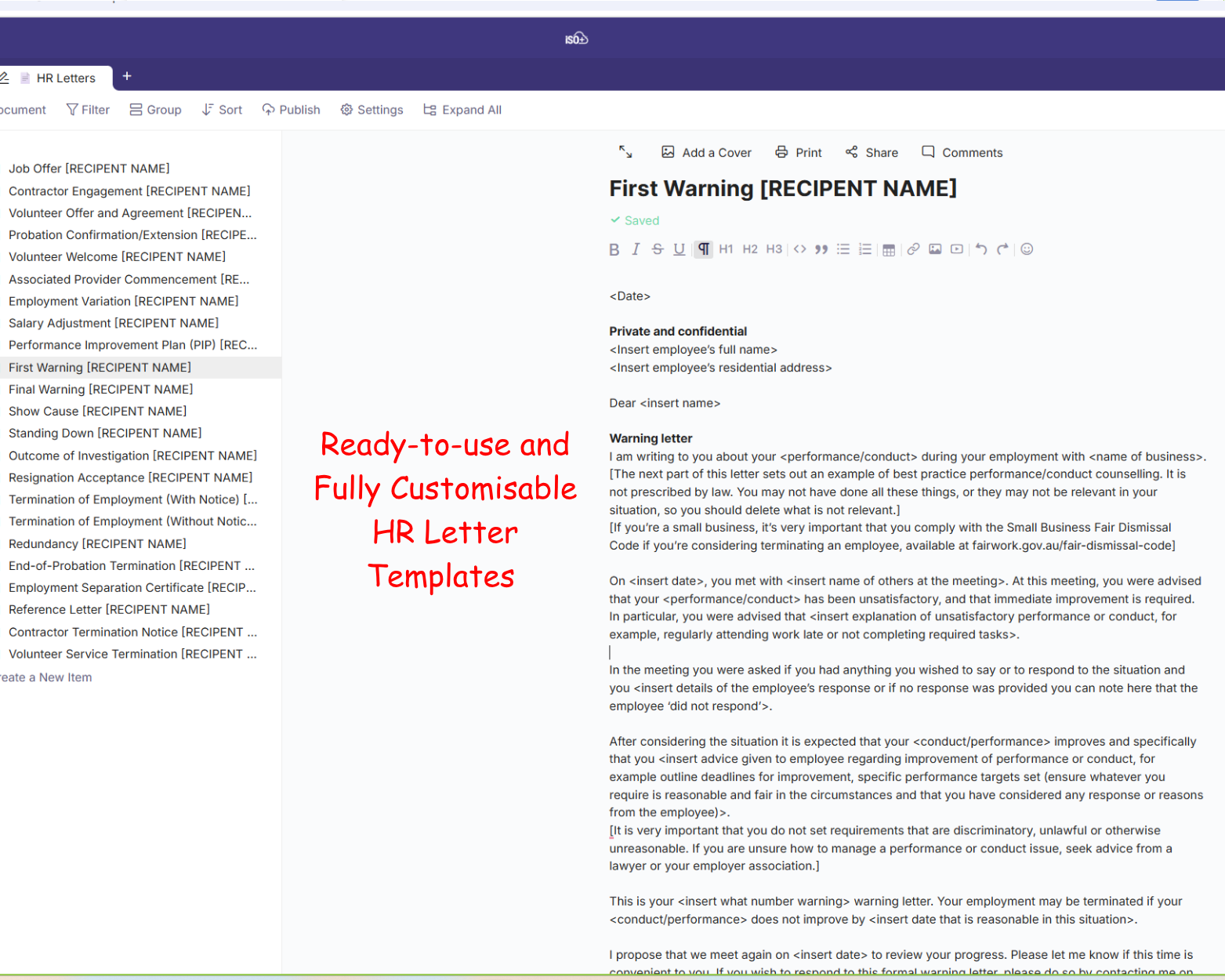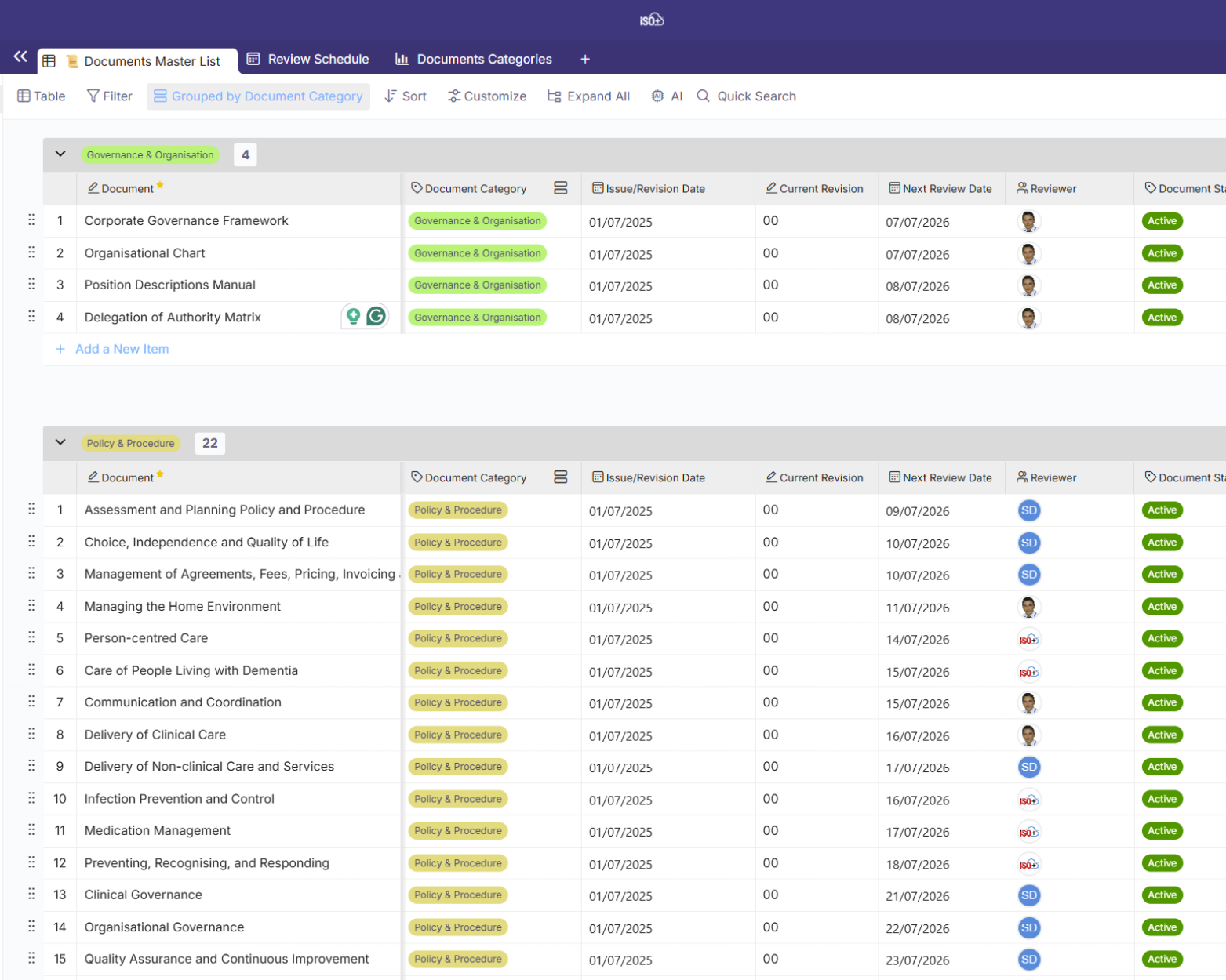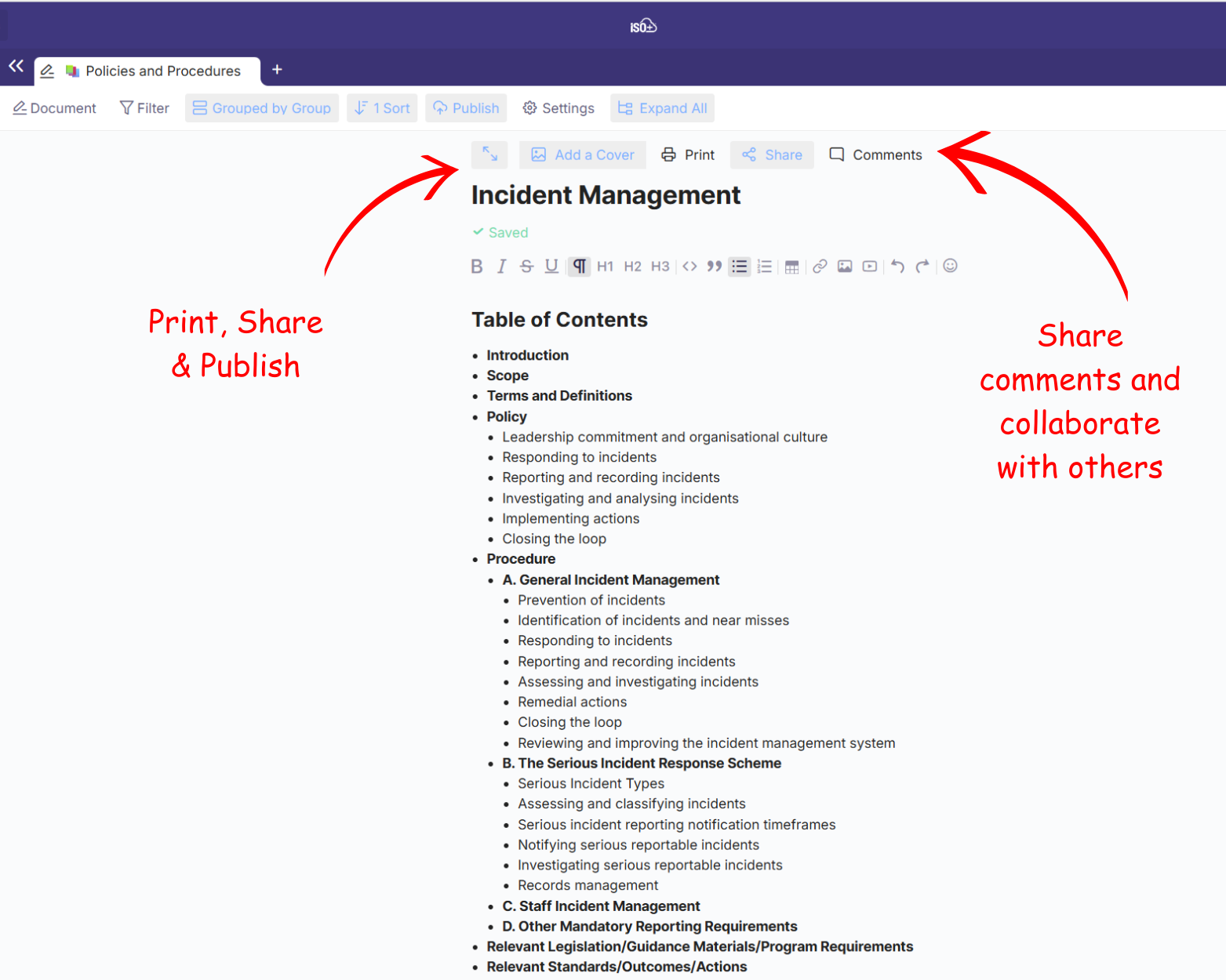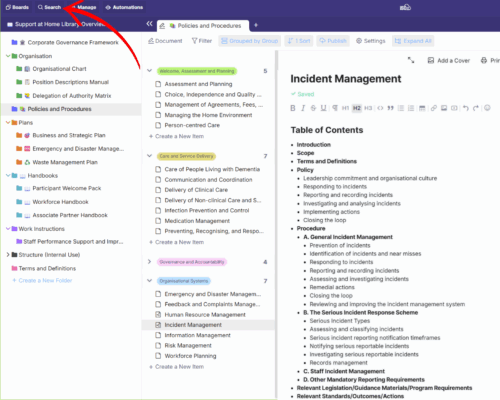 This module helps organisations manage the creation, updating, and control of documented information, such as Policies, Procedures, Plans, Work Instructions, Handbooks, and position descriptions.