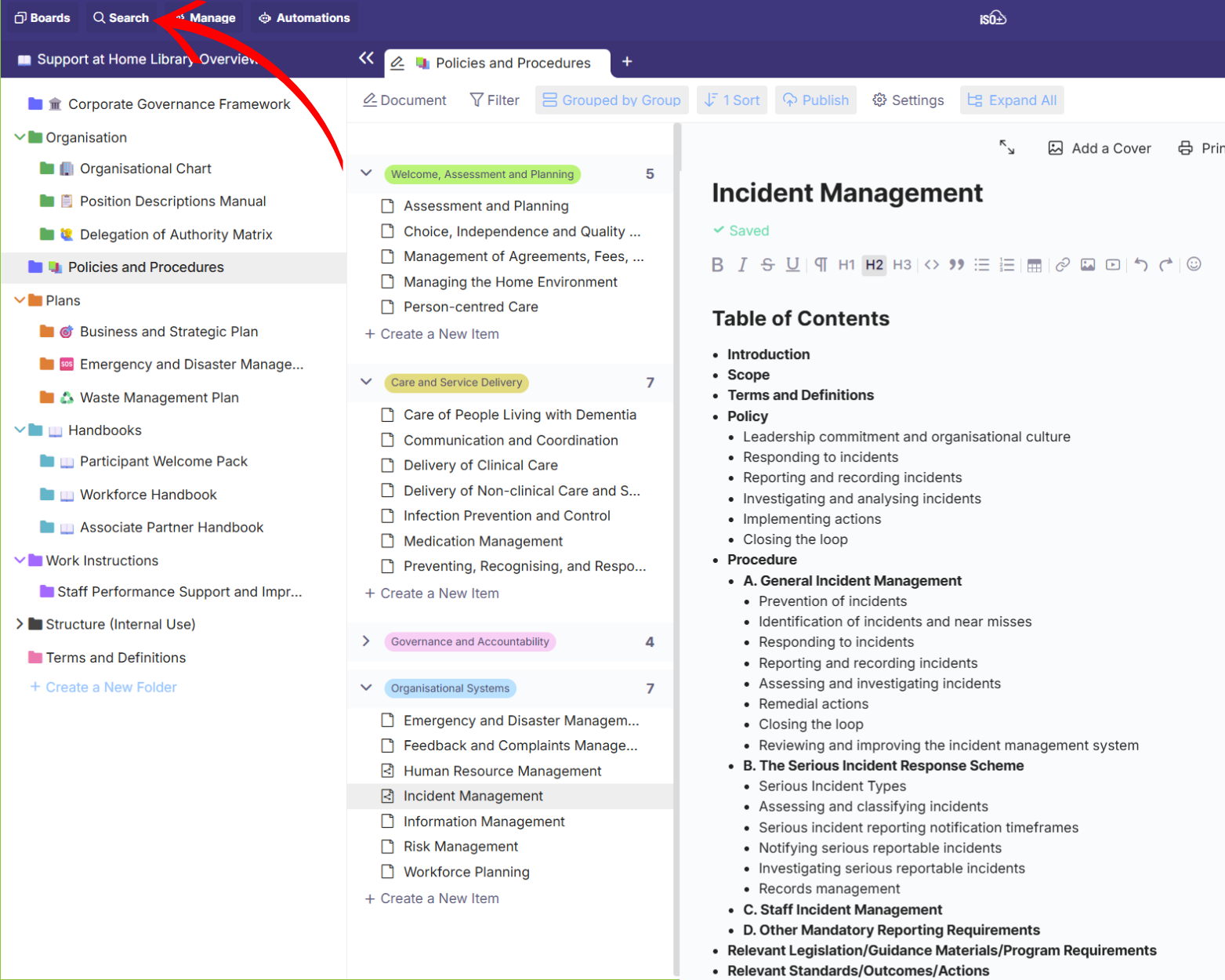 This Document Library is a comprehensive and organised board designed to streamline and simplify the management of all the documents used by your organisation.