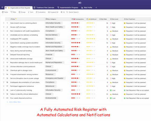 This module helps providers identify risks to participants, workers, and operations, assess their impact and likelihood, take actions to control or reduce them, and monitor the effectiveness of those controls to ensure safety, quality, and compliance.