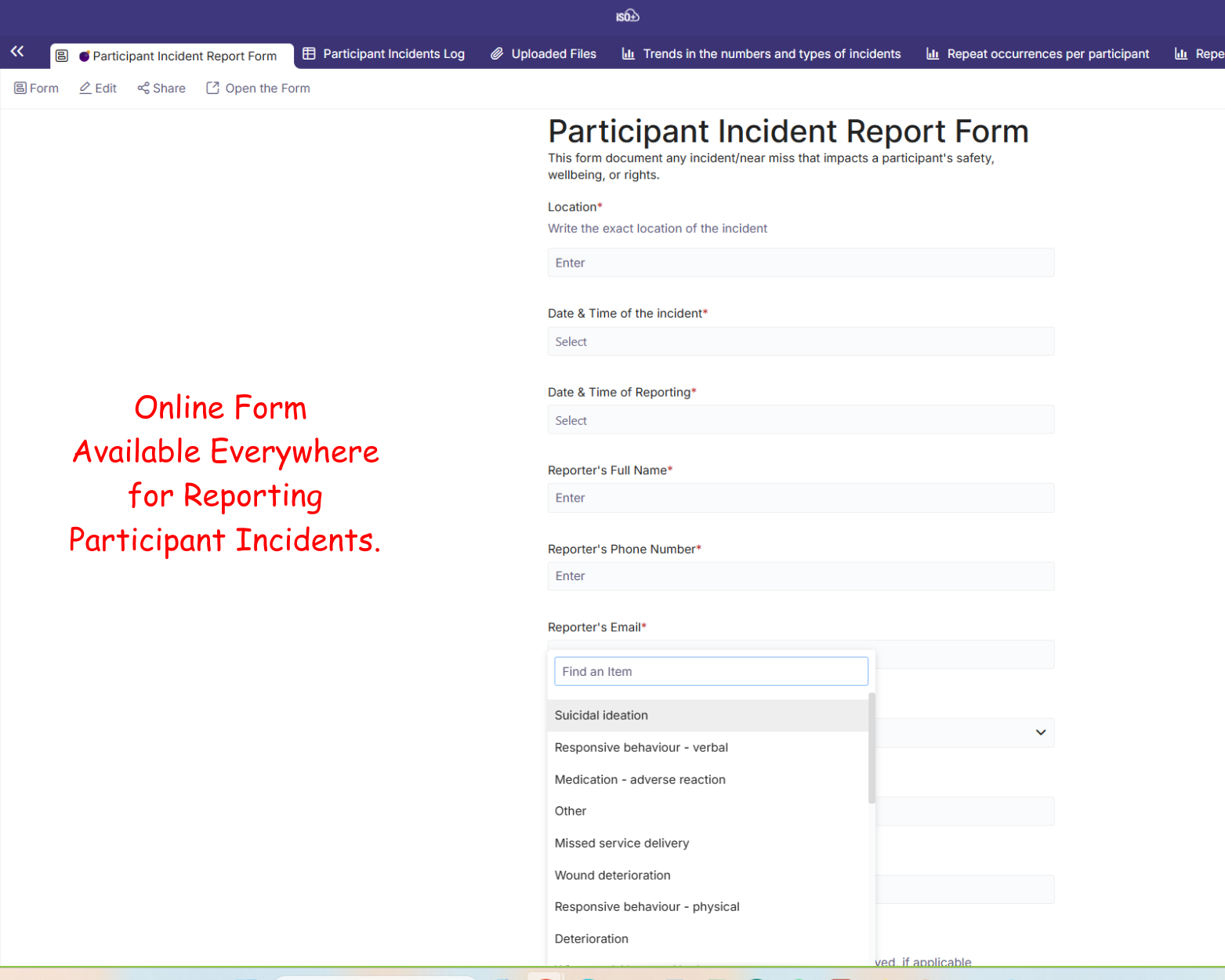This module helps providers plan and prepare for managing incidents and near misses associated with services delivered to participants and staff incidents.