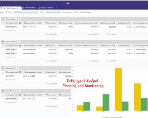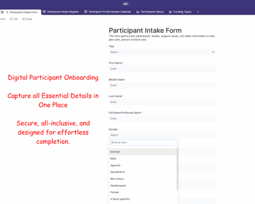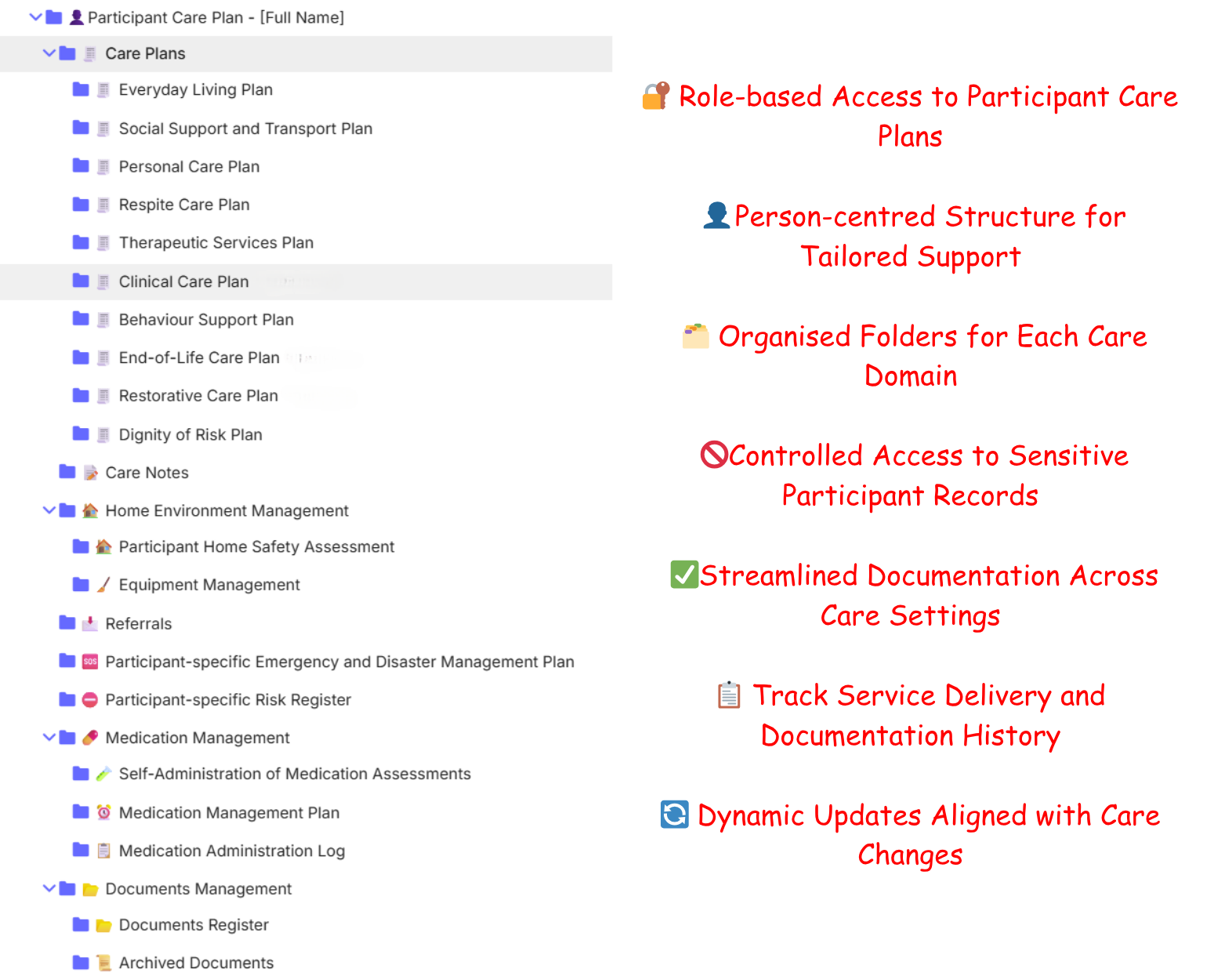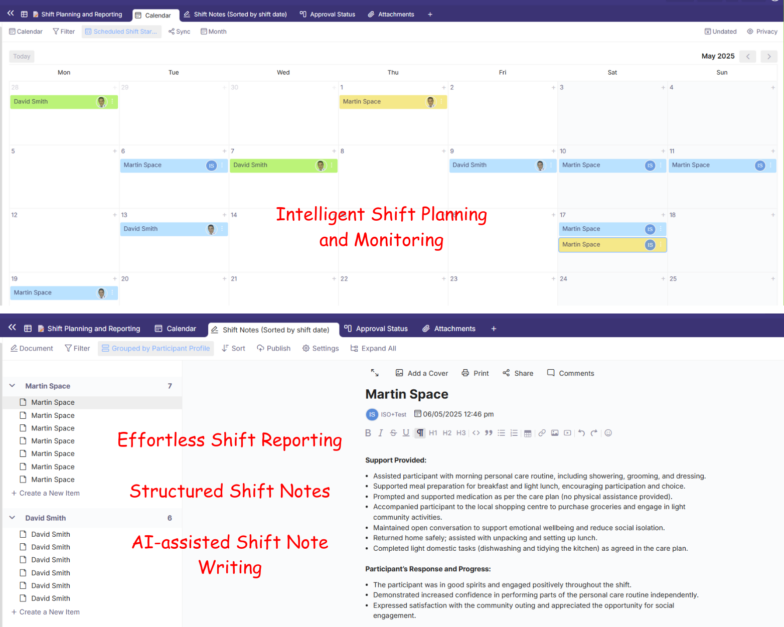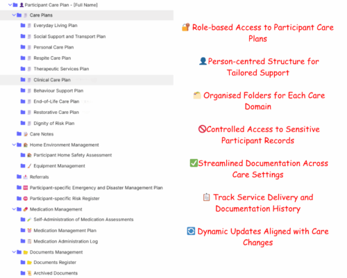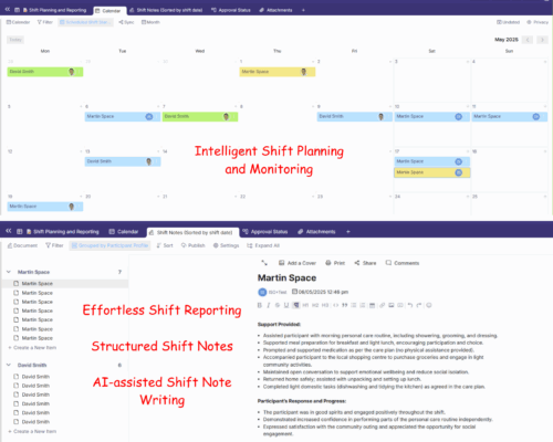 This module helps providers coordinate all aspects of participant care, from budgeting and service planning to worker availability and environmental safety, ensuring care is consistent, personalised, and aligned with participant needs and preferences.