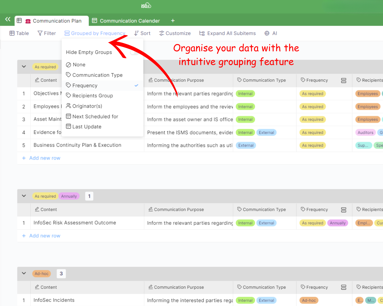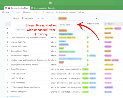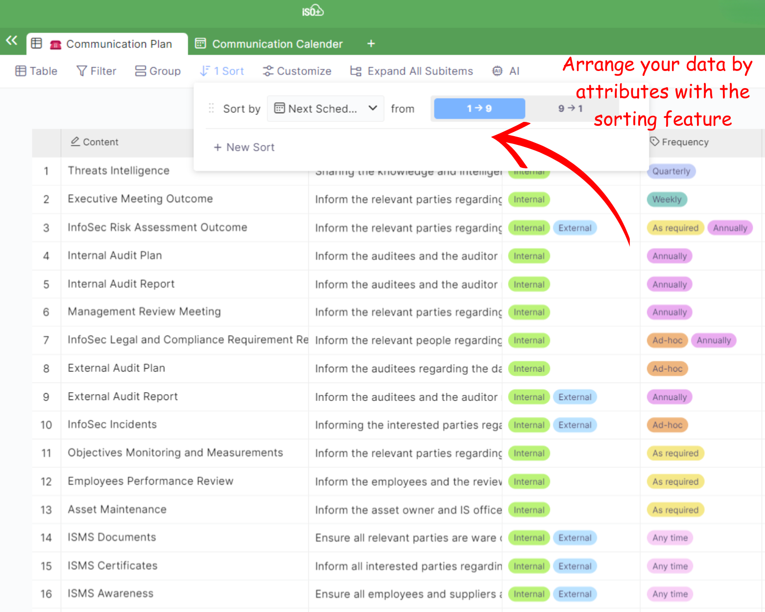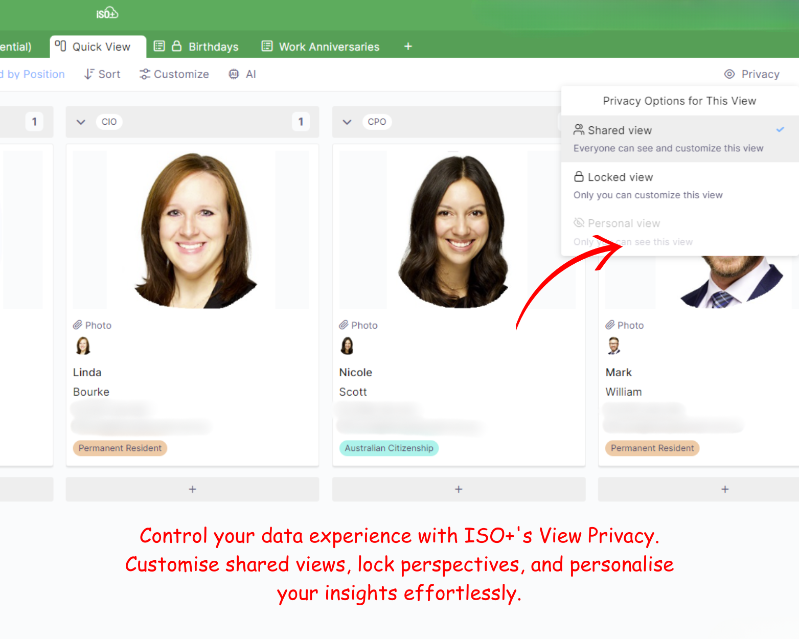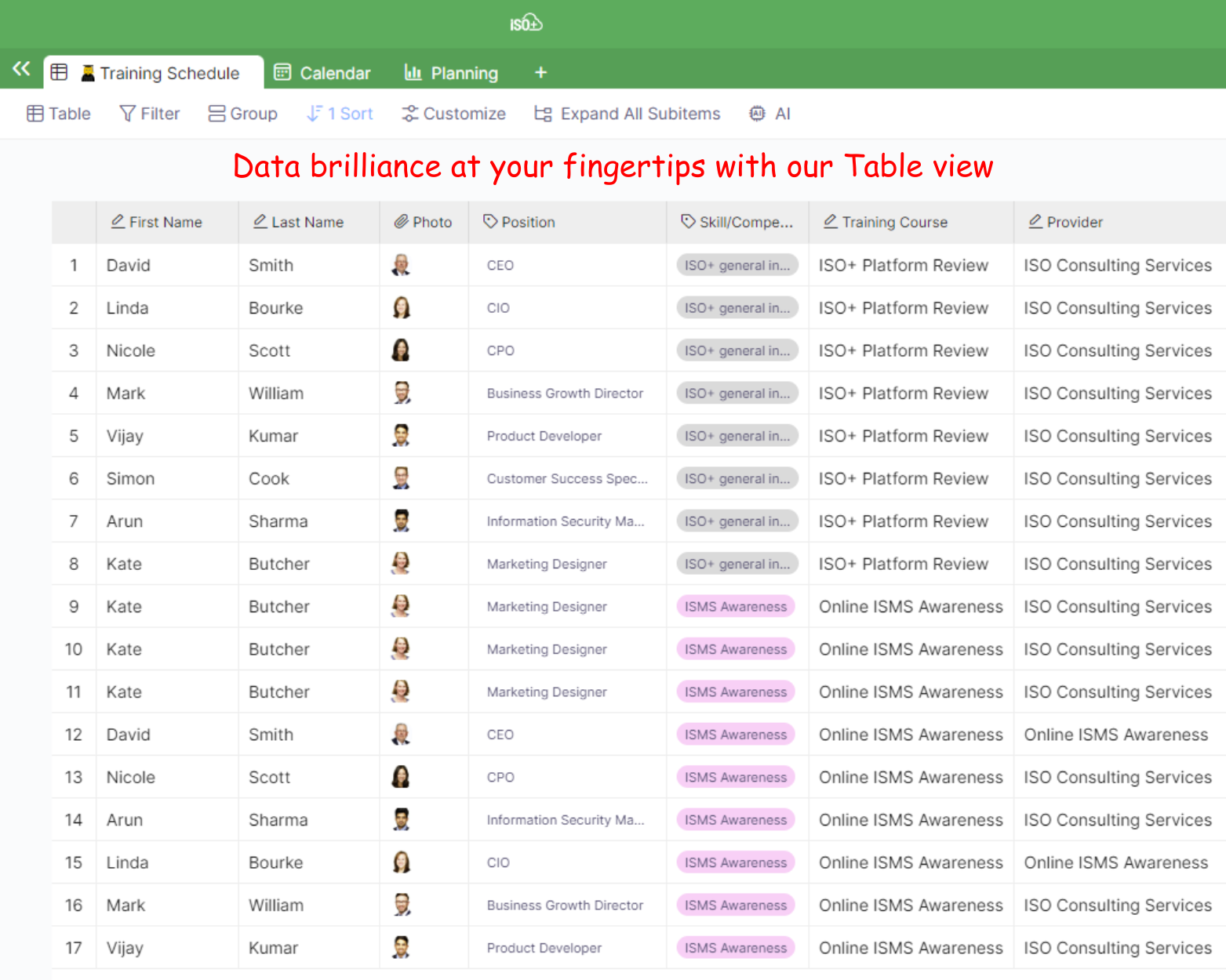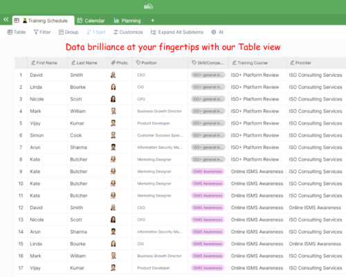 ISO+™ offers you unparalleled flexibility with a diverse set of viewing options, including Table, Columns, List, Calendar, Gantt, Form, Chart, Document and files. The power is in your hands as you decide which view aligns best with your workflow at any given moment. Effortlessly transition between different views within the same folder, tailoring your workspace to specific needs. Alternatively, create a fresh perspective by generating a new view every time you open a new tab in ISO+™. The freedom to choose your preferred view, coupled with the ease of switching, ensures a personalised and dynamic experience, making ISO+™ an adaptive platform that evolves with your productivity requirements.