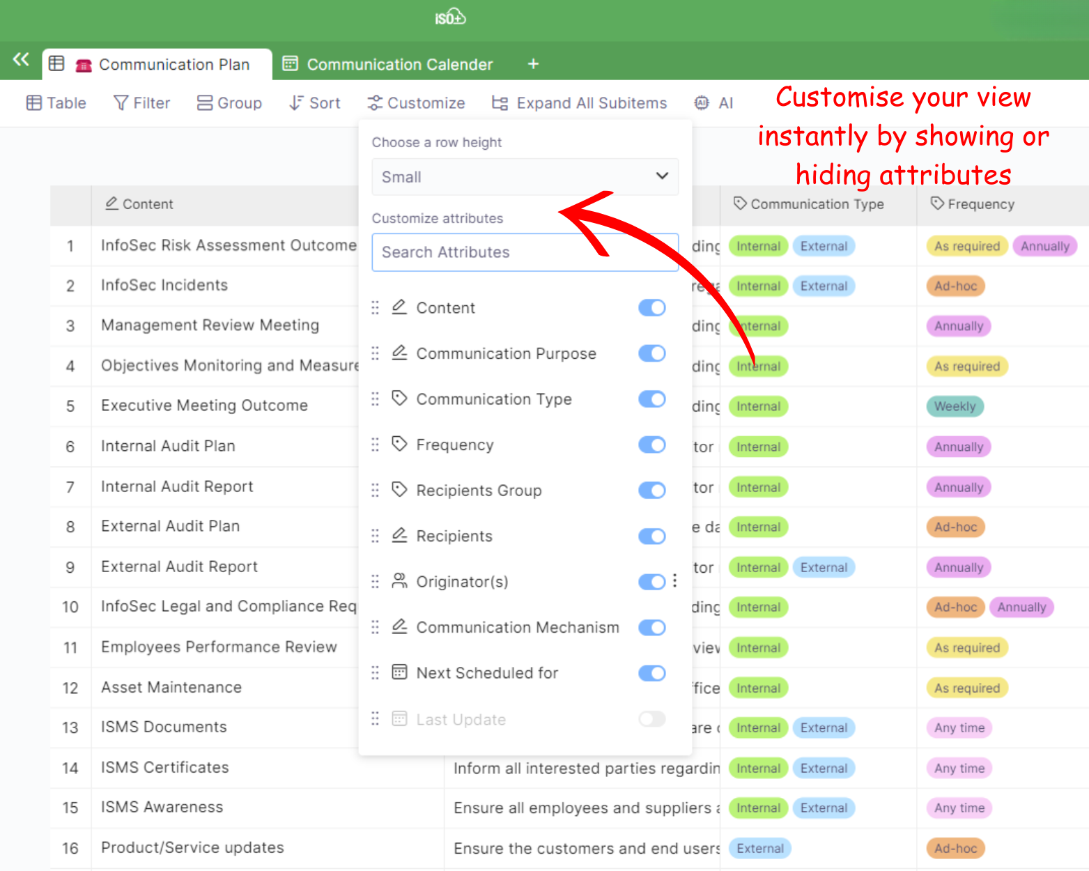Effortlessly harness the power of data organisation with ISO+™’s versatile tools. Customise your data presentation by employing features such as filtering, sorting, and grouping. Take it a step further with our unique attribute control, allowing you to decide which information to showcase and what to conceal. Embrace the full spectrum of visual customisation with our colour options, providing you with the ability to assign distinct hues to specific data elements. Plus, enhance your viewing experience by toggling between dark and light modes, ensuring optimal readability and comfort in various lighting conditions.