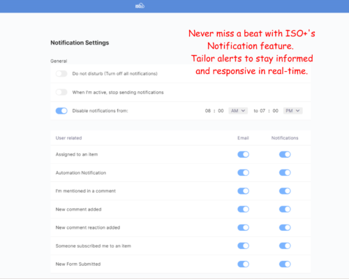 Unlock Seamless Collaboration and Accelerate Results with ISO+™’s Automation Capabilities! ISO+™ empowers us to establish meticulously defined and repeatable work processes, fostering effortless collaboration within your team. From setting reminders and sending emails to automating recurring tasks, we assist you in streamlining manual work, ensuring efficiency and precision. The potential is limitless, and we can unleash the power of automation. Experience the ease of automated workflows, propelling your team towards faster and more streamlined outcomes.