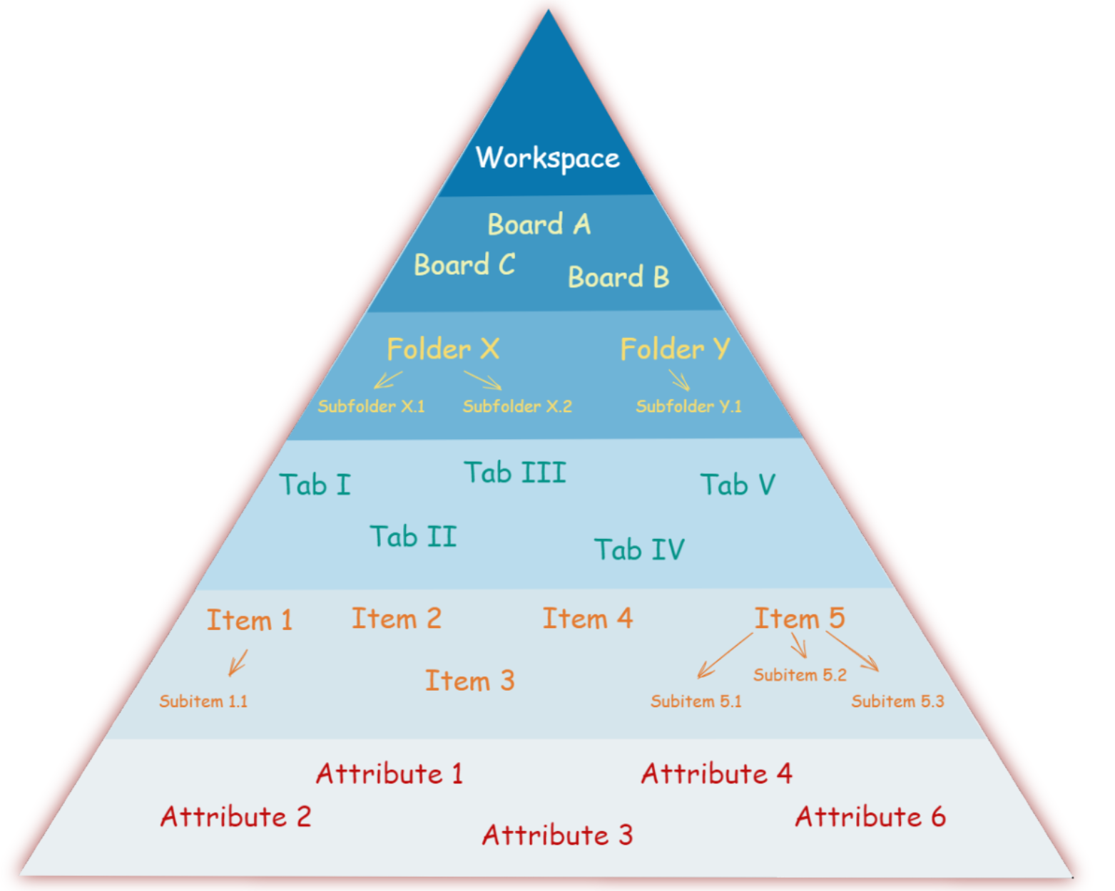 ISO+™ boasts a hierarchical framework creating an organised digital environment. The Workspace provides the overarching structure for your projects. Within Workspaces, Boards, offer a dynamic canvas to manage tasks and ideas. The next tier, Folders and Subfolders, allows for meticulous categorisation, ensuring a tailored organisation that suits your workflow. Dive deeper, Tabs facilitates easy navigation and access to specific sections. Further granularity is achieved through Items and Subitems, allowing you to break down tasks into manageable units. Finally, Attributes add a layer of customisation, enabling you to enhance data with specific details.